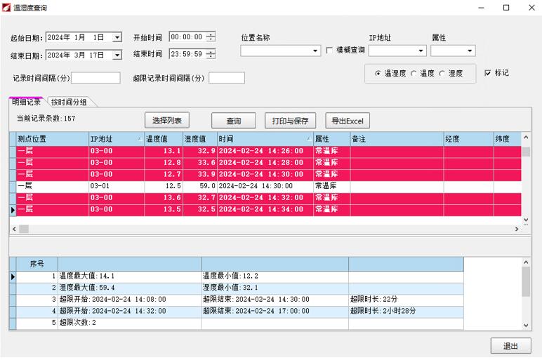 監(jiān)控、查詢、報(bào)警是溫濕度監(jiān)控系統(tǒng)三大主要功能,我們根據(jù)大部分企業(yè)實(shí)際使用需求設(shè)計(jì)并不斷完善的溫濕度監(jiān)控系統(tǒng),在數(shù)據(jù)查詢模塊可以根據(jù)日期時(shí)間、位置名稱、IP地址(監(jiān)測終端地址)、屬性(庫房屬性如:常溫庫)、自定義數(shù)據(jù)間隔、數(shù)...