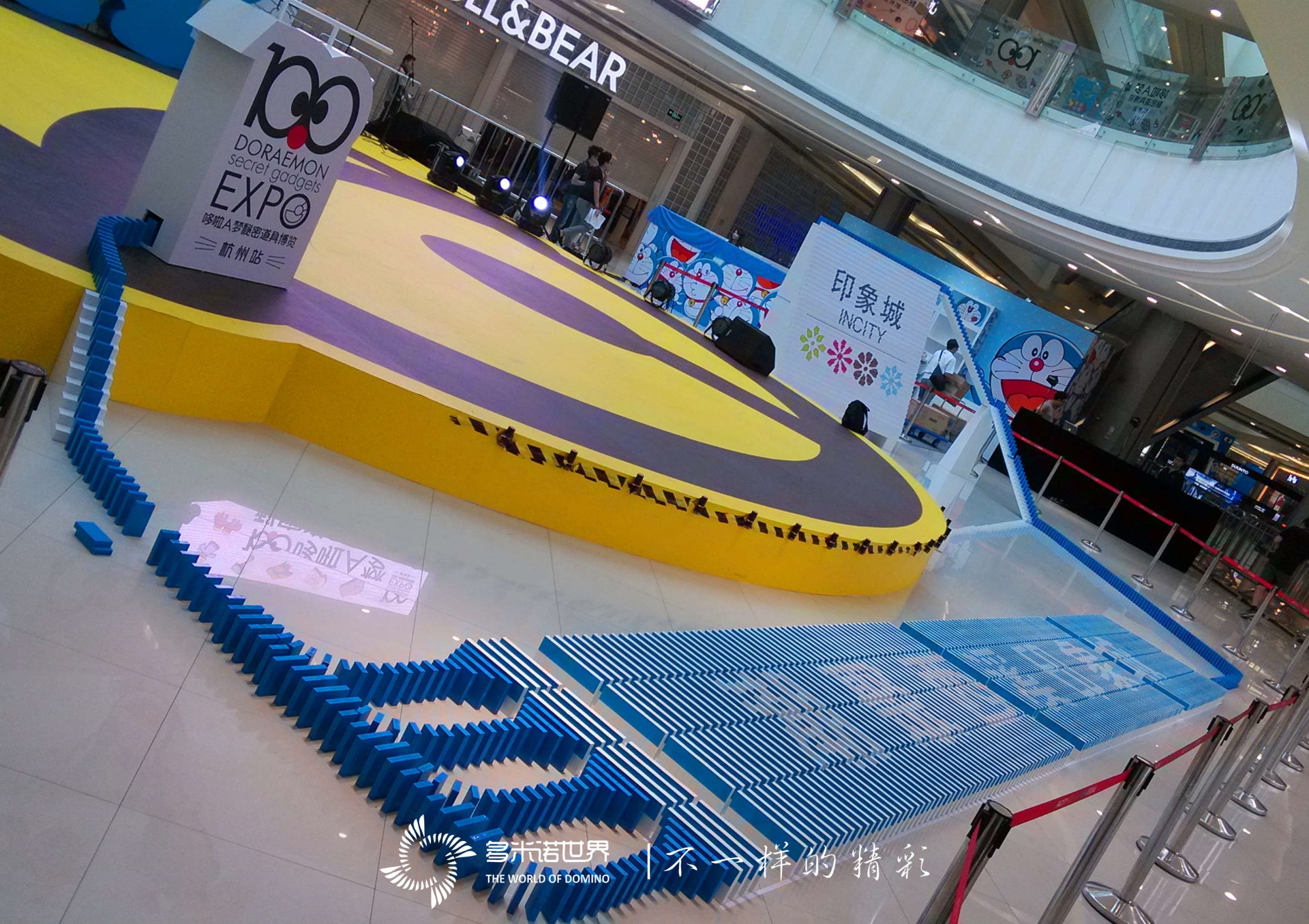 在啟動(dòng)儀式中,不僅有哆啦A夢及他的小伙伴們載歌載舞的表演,更有震撼人心的多米諾骨牌表演。