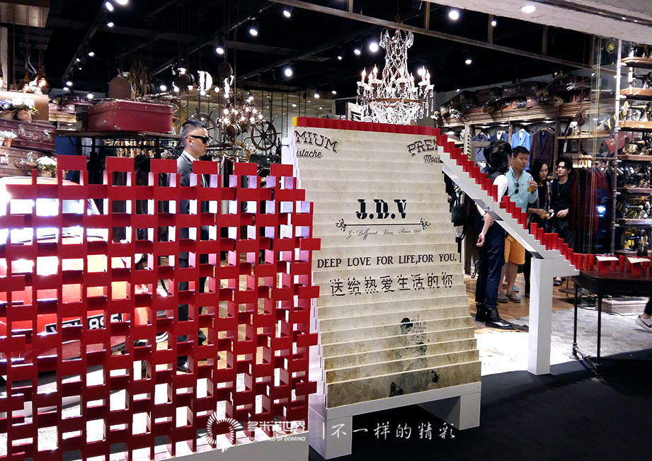 J.D.V三里屯店盛大啟幕。“多米諾世界”團隊助陣,演繹酷炫時尚多米諾啟動儀式,亞洲街舞王子黃景行與眾嘉賓共注香檳啟動首枚骨牌,慶祝三里屯店開業(yè)。