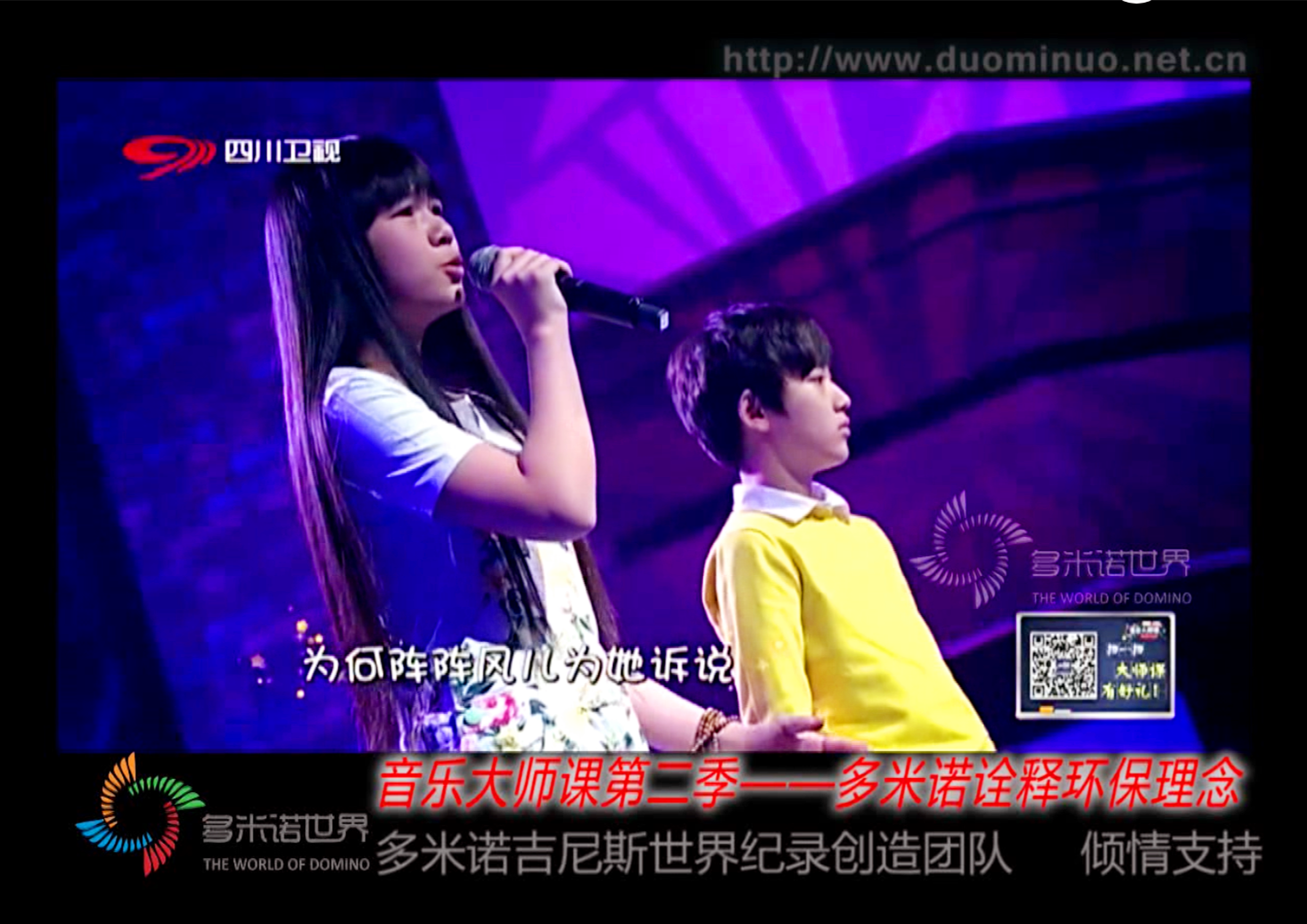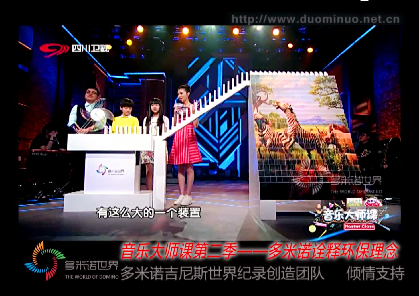 2016年4月30日,在《音樂大師課》第二季的節(jié)目中,“靜默美少”宋亞軒和學(xué)姐宮瑜聰共同演繹《一個(gè)真實(shí)的故事》。為了讓學(xué)生了解這首歌曲背后的故事及映射的社會(huì)意義,古巨基從“保護(hù)瀕危動(dòng)物”的角度出發(fā),將多米諾世界團(tuán)隊(duì)帶來的巨幅立體多米諾展現(xiàn)在觀眾面前,通過展示稀有動(dòng)物的圖片,以及骨牌模擬整個(gè)生態(tài)圈的關(guān)系,讓學(xué)生懂得保護(hù)生態(tài)、保護(hù)環(huán)境的道理