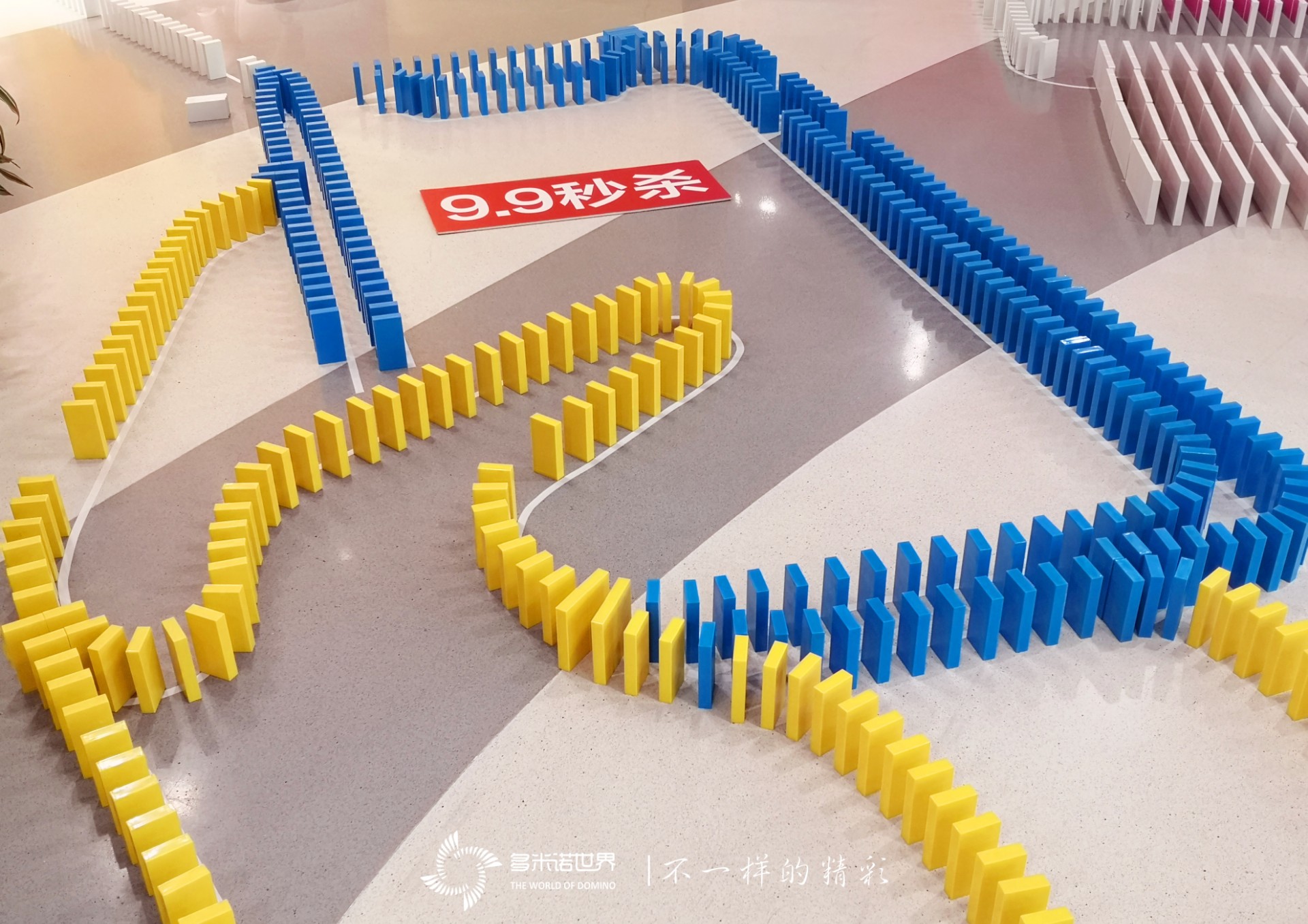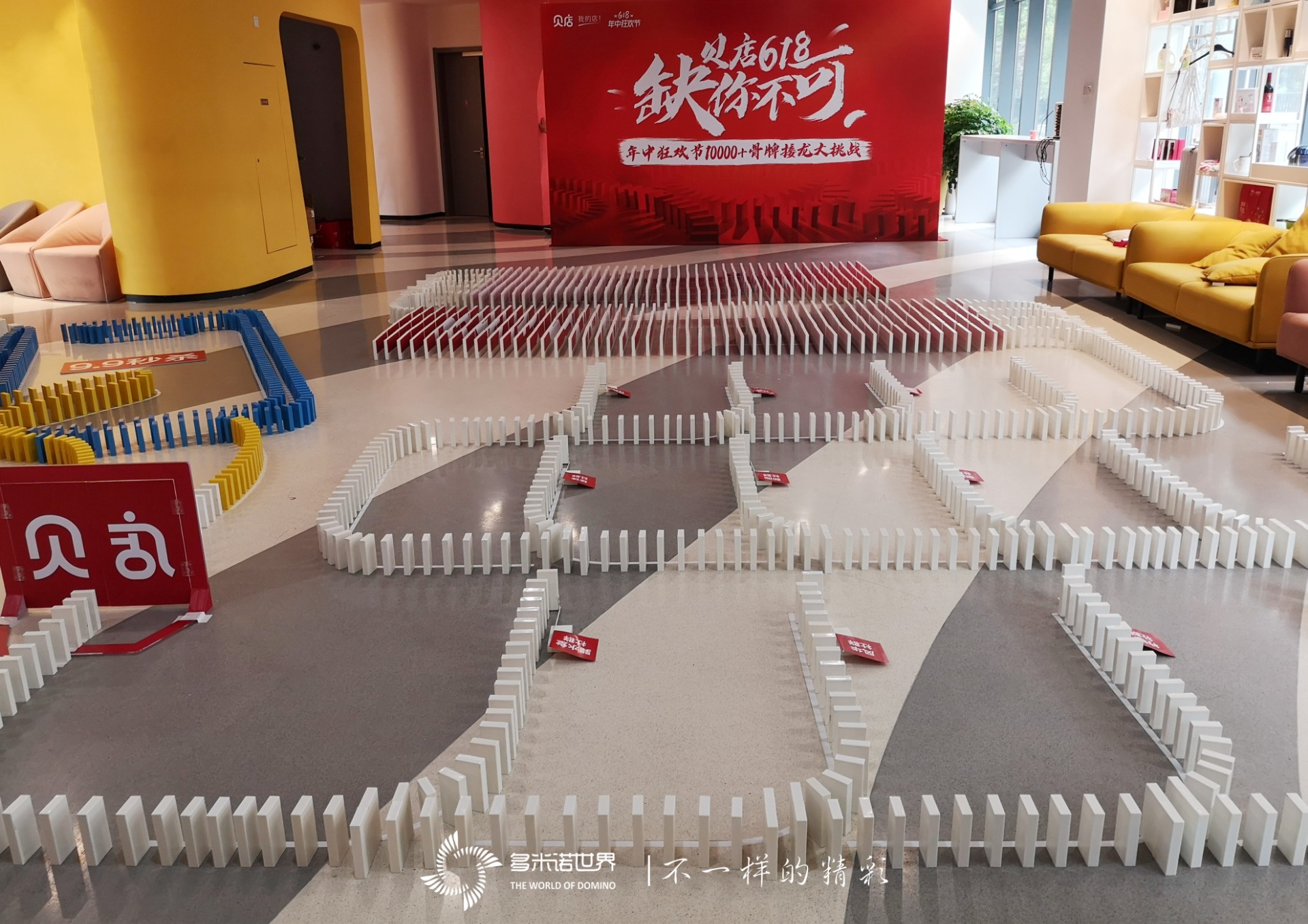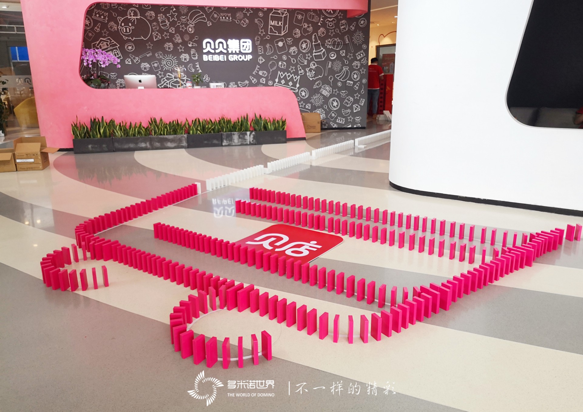 貝店的精英們在多米諾世界團(tuán)隊的指導(dǎo)下,分工合作,一個個生動的圖案在地面上整齊的碼放出來,在歡呼聲中依次呈現(xiàn)。
