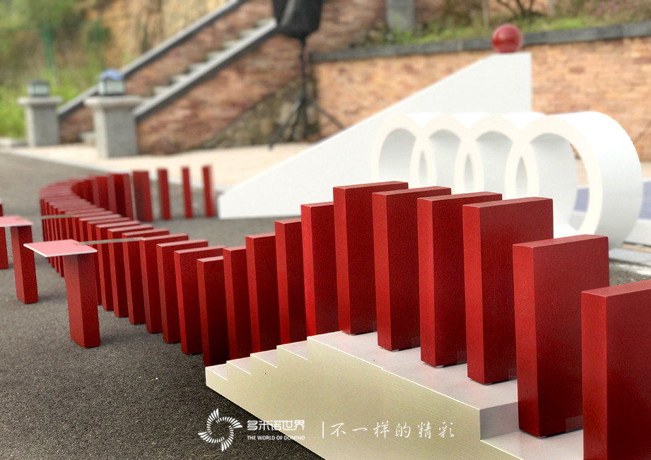 紅色的骨牌高高低低、錯落有致,為啟動活動增添了一份新奇與創(chuàng)意。當啟動嘉賓將紅色的球放入滑道,一枚枚骨牌順序前行,由骨牌組成的立體多米諾畫面,瞬間變換成活動主題畫面,“駕控孤島”駕控體驗之旅文字映入觀禮嘉賓眼中,活動現(xiàn)場達到高潮。