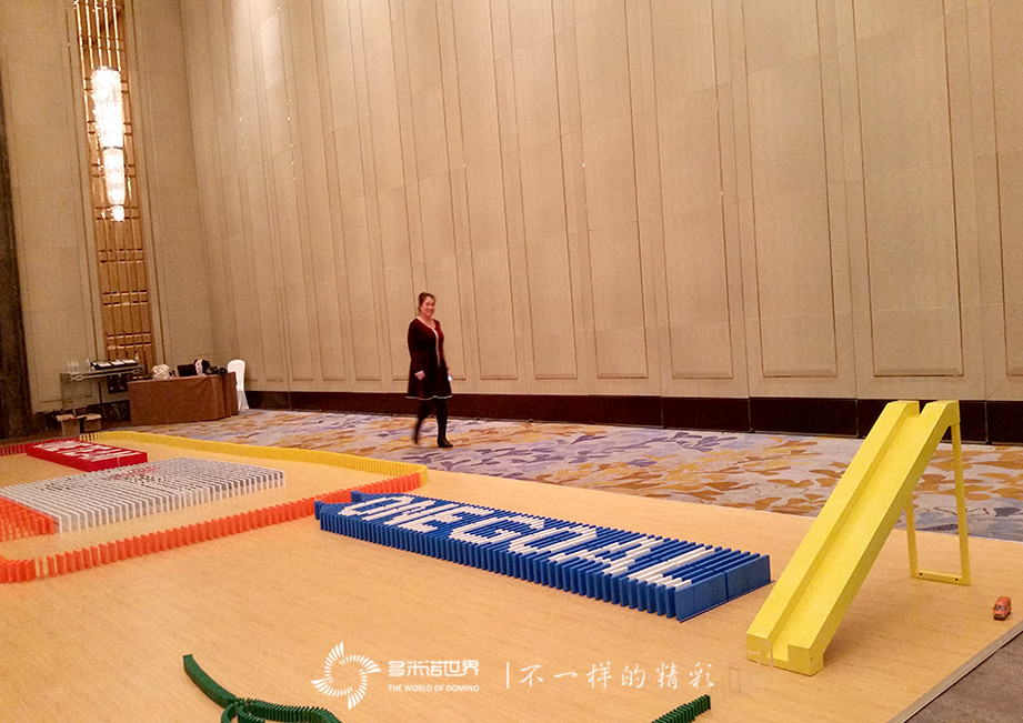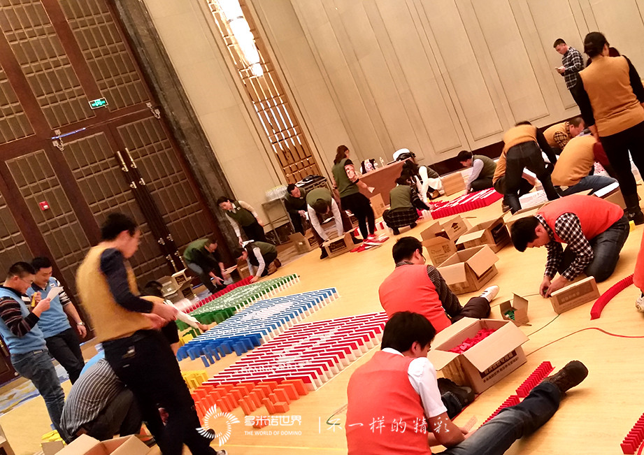 也許是得到了上海團隊的經(jīng)驗,哈爾濱團隊在擺牌過程中顯得更加順利,雖然各組都經(jīng)歷了一些波折,還是很快的完成了骨牌擺放任務(wù)。