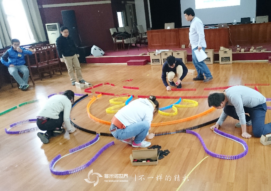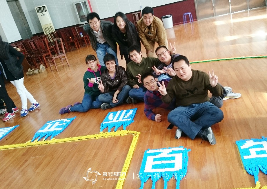 2014年11月1日,位于北京市大興區(qū)預(yù)備軍訓(xùn)練基地里,來自思源的50余名員工開展了一場豐富多彩的多米諾體驗課。早上9時許,隊員們著裝整齊來到會議室里,認(rèn)真聽來自多米諾世界的專業(yè)講師來講解多米諾骨牌的運(yùn)動規(guī)則后,由各組組長帶領(lǐng)來到指定任務(wù)區(qū)域來完成本團(tuán)隊的“工作”。盡管各組隊員在體驗骨牌的過程中,屢屢接受骨牌意外倒下的“驚喜”,但為了留下一個圓滿的回憶,一次又一次的恢復(fù),在這個過程中,沒有埋怨,沒有指責(zé),有的只是大家在一起的團(tuán)結(jié)協(xié)作,大家為了同一個目標(biāo)而共同努力。當(dāng)骨牌全部成功展現(xiàn)后,歡呼聲久久不絕于耳。