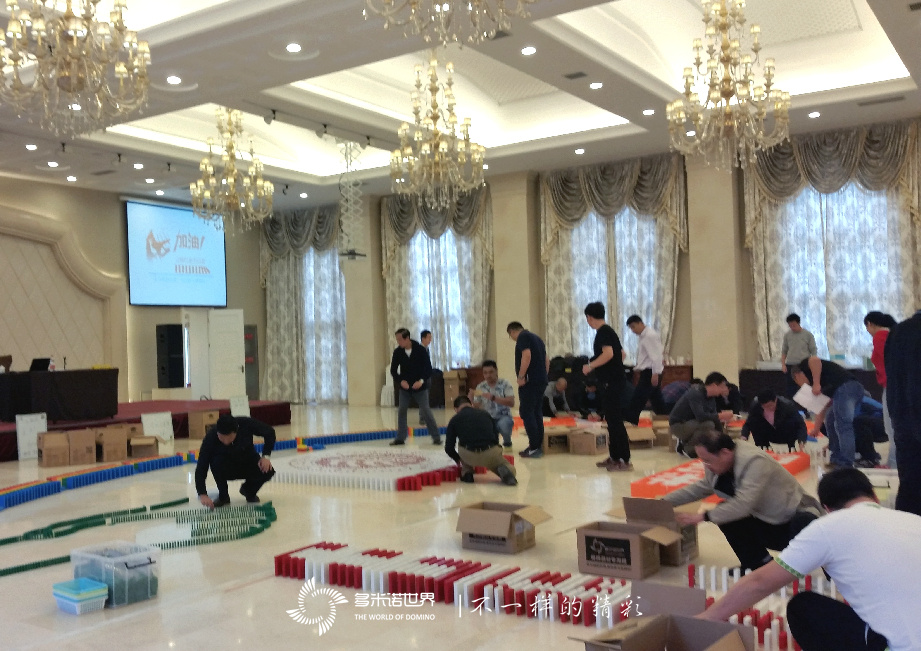 當多米諾世界教練對于本次活動及多米諾骨牌擺放方法做了詳細講解之后,被隨機分成四組的嘉賓順序進入場地,開始進行多米諾骨牌擺放。