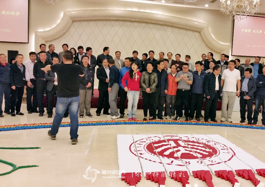 2015年10月24日,為期兩年的“中國夢”文化經(jīng)濟研討成功落下帷幕。主辦方特別邀請多米諾世界團隊,策劃設(shè)計了一場以“中國夢、北大夢、我的夢”為主題的多米諾團隊活動,將參加研討的近百位參與研討的嘉賓齊聚靜之湖,一同用多米諾骨牌擺放心中的中國夢。