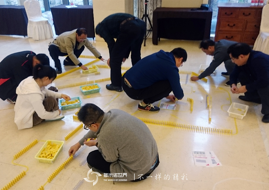 初次接觸多米諾,不免出現(xiàn)意外,沒有預(yù)兆的倒牌聲音在現(xiàn)場此起彼伏??粗鴦倓倲[放完成的成果瞬間消失,大家并沒有氣餒,而是迎難而上,越戰(zhàn)越勇,直至所有骨牌擺放完成,臉上才露出了孩子般的笑容。