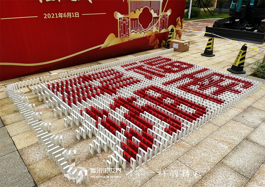 早上6:00,多米諾世界的團(tuán)隊(duì)小伙伴們就開始了緊張的布置工作,一枚枚多米諾骨牌上面,附和著一把把打開美麗新家園的鑰匙,在地面拼出“幸福湖南”四個(gè)大字,10:00整,一輛具有代表意義的大家伙“挖掘機(jī)”觸碰了首枚骨牌,骨牌畫面順利展現(xiàn),現(xiàn)場(chǎng)掌聲不斷。