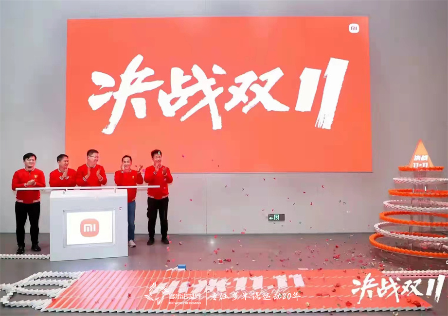 多米諾世界團(tuán)隊(duì)為小米“決戰(zhàn)11.11”啟動(dòng)會(huì)特別設(shè)計(jì)的多米諾啟動(dòng)儀式。
