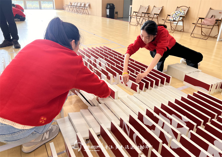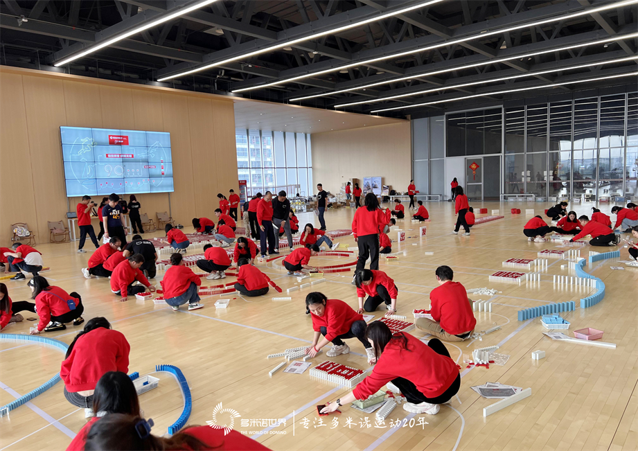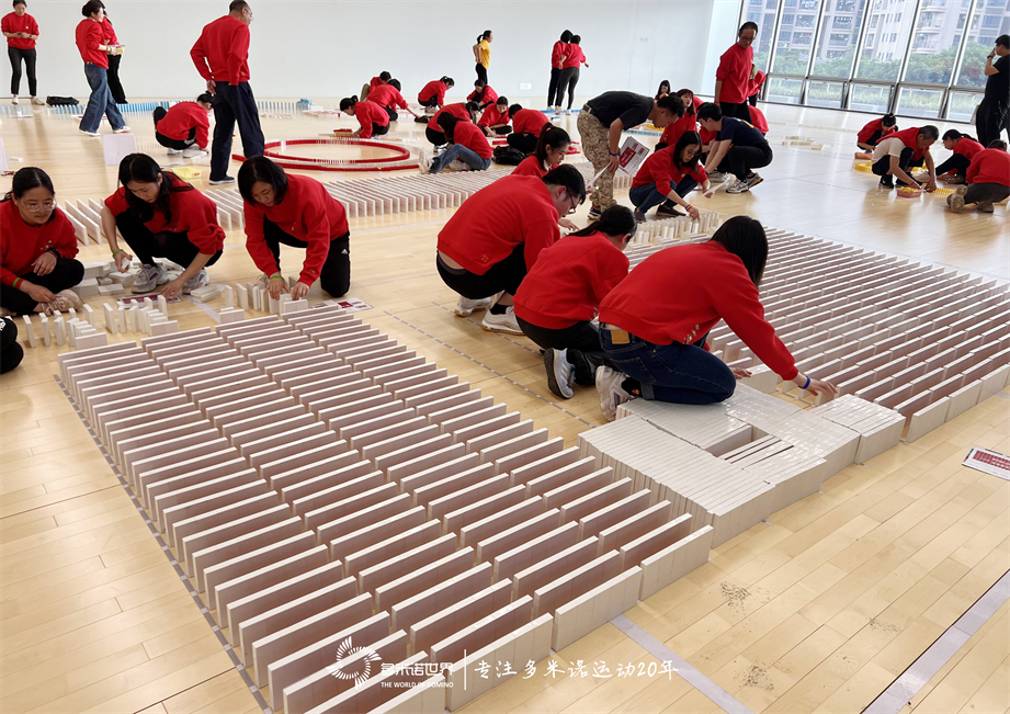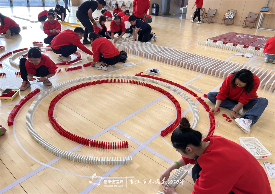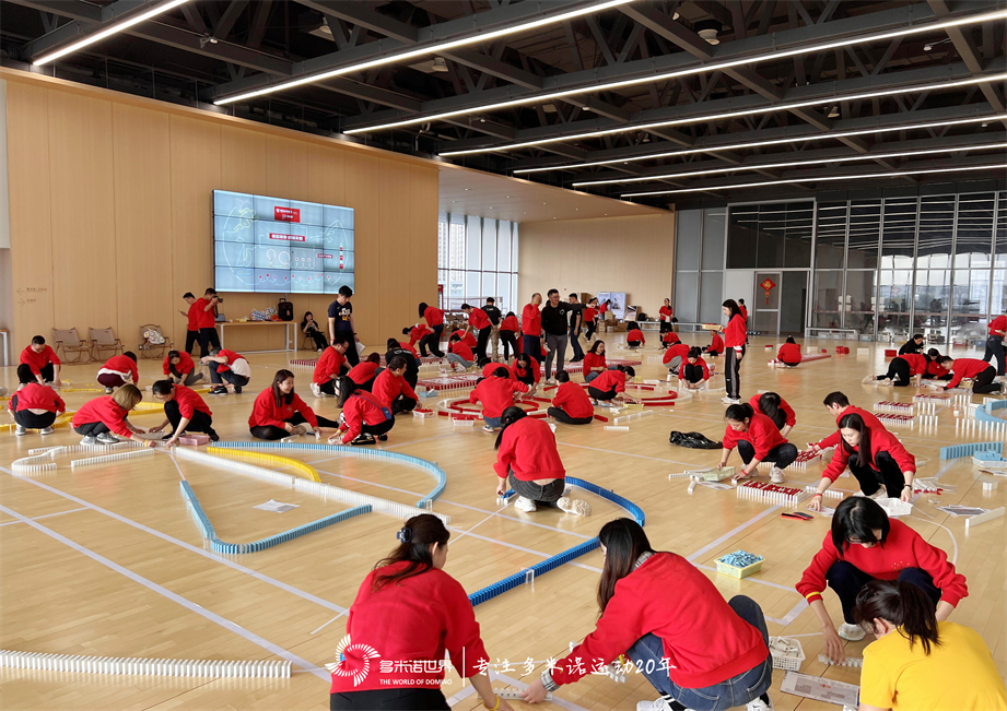 其間大家從了解骨牌的碼放技術(shù)到小組分工協(xié)作完成作品中一幅幅畫面的搭建碼放,再到每幅多米諾骨牌畫面的連接,大家以飽滿的熱情投入其中,全心的付出,最終贏得骨牌作品百分百的完美呈現(xiàn),開心愉悅的同時也為這次久違的相聚畫上了圓滿的句號。