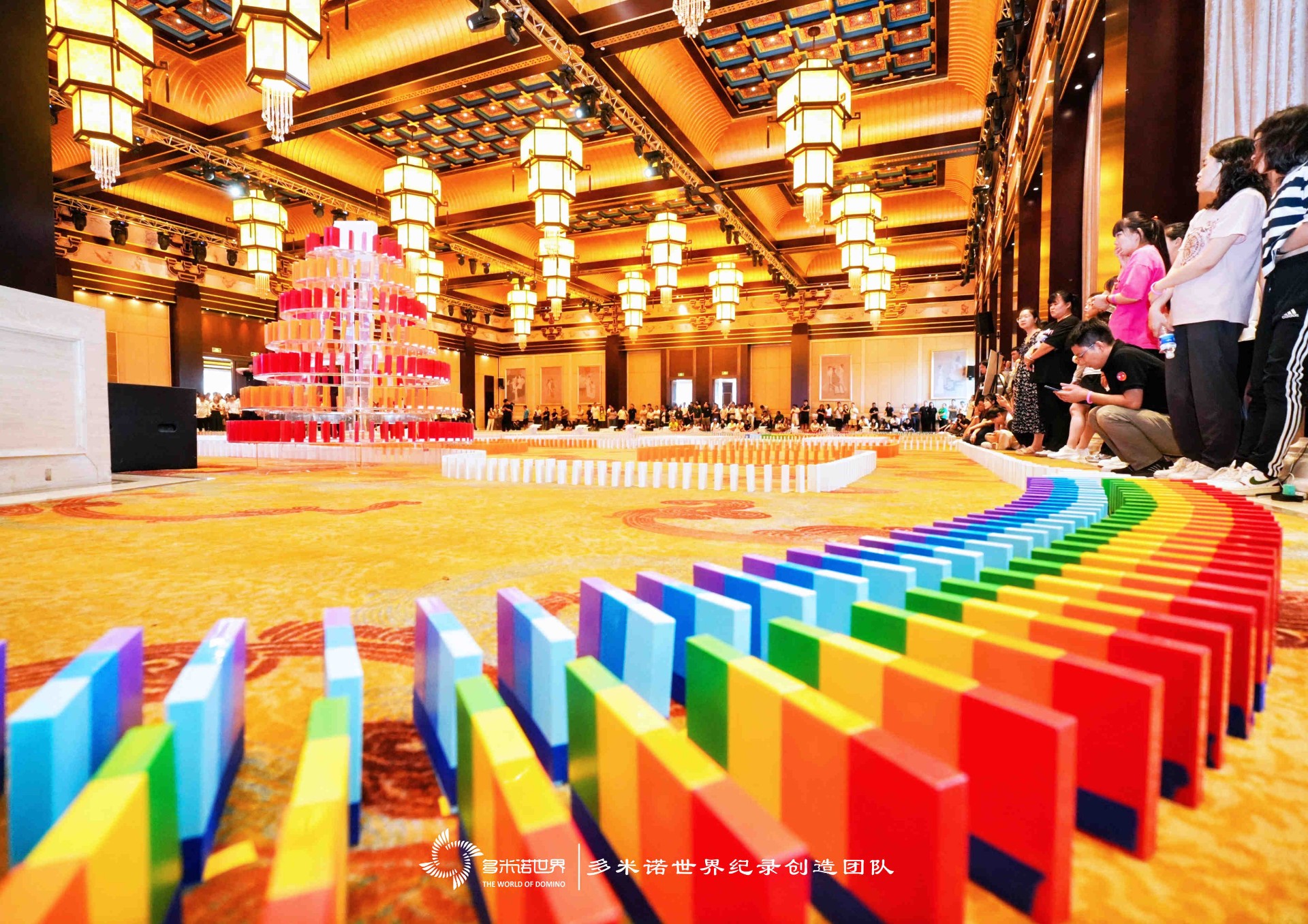 經(jīng)過三個(gè)小時(shí)的共創(chuàng),一幅精美的多米諾骨牌畫作終于完成。在全場(chǎng)觀眾的期待中,公司領(lǐng)導(dǎo)共同推動(dòng)第一枚骨牌,“九安號(hào)”小火車啟動(dòng),它圍繞著由九安醫(yī)療文化與未來愿景的創(chuàng)意拼搭模型景觀。緊接著,揚(yáng)帆起航、公司的價(jià)值觀、團(tuán)隊(duì)、跳動(dòng)的心、公司的發(fā)展史、絢麗的煙花、蛋糕塔裝置、美麗的彩虹以及企業(yè)文化內(nèi)容組成的骨牌畫面和聯(lián)動(dòng)裝置依次完美呈現(xiàn),贏得了在場(chǎng)觀眾的熱烈掌聲。