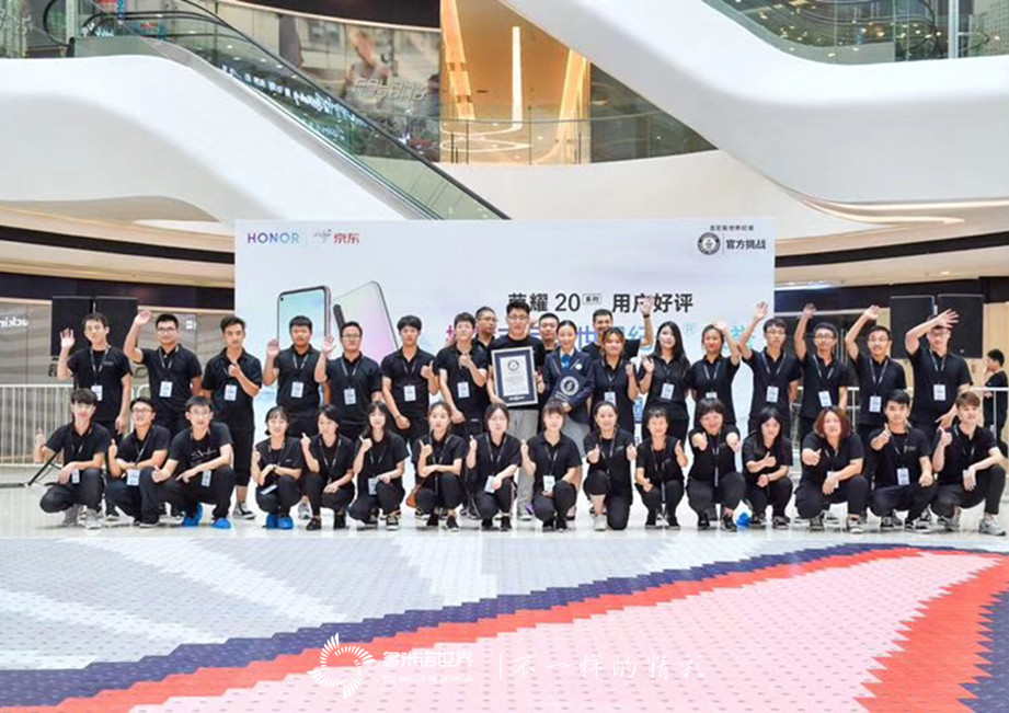 2019年8月11日,北京朝陽區(qū)銀河SOHO D座中庭,歷時(shí)8小時(shí),隨著現(xiàn)場花粉手中最后一塊帶有榮耀總裁趙明對用戶感謝的賀卡的落地,一幅面積達(dá)161.85平米的巨型賀卡拼圖最終成形。吉尼斯世界紀(jì)錄官方現(xiàn)場認(rèn)證并宣布,榮耀x京東聯(lián)合百萬榮耀20系列用戶好評挑戰(zhàn)吉尼斯世界紀(jì)錄?榮譽(yù)成功,共同創(chuàng)造了“世界最大賀卡拼圖”新紀(jì)錄。