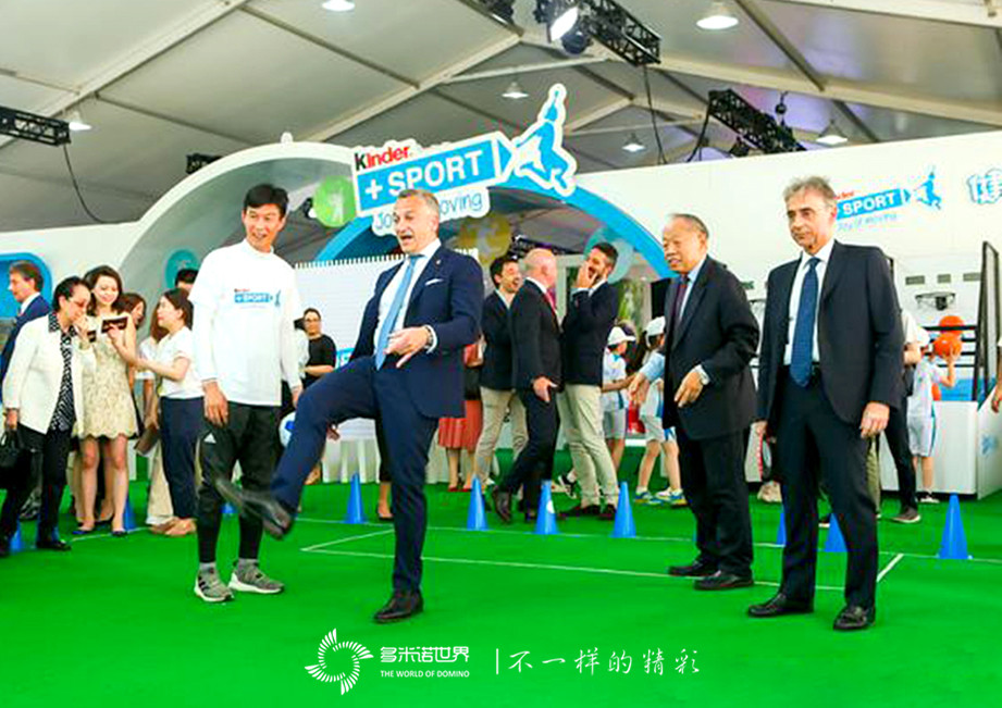 發(fā)布會現(xiàn)場,由多米諾世界團隊設(shè)計實施的新一季“健達+運動”校園運動季多米諾啟動儀式隆重舉行。意大利駐華大使謝國誼(Ettore Francesco Sequi)閣下、中國人民外交學(xué)會名譽會長,前中國外交部部長李肇星閣下、上海市浦東新區(qū)商務(wù)委員會主任辛雅琴、中國足球名宿,前國腳區(qū)楚良、費列羅中國區(qū)總經(jīng)理馬如城(Mauro De Felip),作為啟動嘉賓,共同出席了啟動儀式。