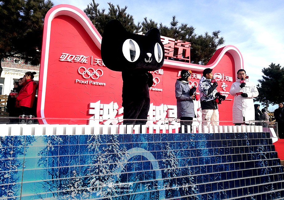 2018年1月6日,天貓冰雪節(jié)在北京南山滑雪場正式啟動,強勢引爆冬季大狂歡;跳水王子田亮攜手短道速滑冠軍李堅柔也重磅出席,與天貓一起見證全民健身時代。主辦方特別邀請多米諾世界團隊,將多米諾啟動儀式設置在活動現(xiàn)場。骨牌在皚皚白雪中傲然站立,隨著啟動口號的發(fā)出,骨牌畫面瞬間更替為“天貓-奧運會電商合作伙伴”的紅色畫面。紅紅火火的畫面,“越冬越要燃”的口號,精彩的多米諾啟動儀式,為寒冷的滑雪場帶來一份溫暖與熱情,將活動推向高潮。