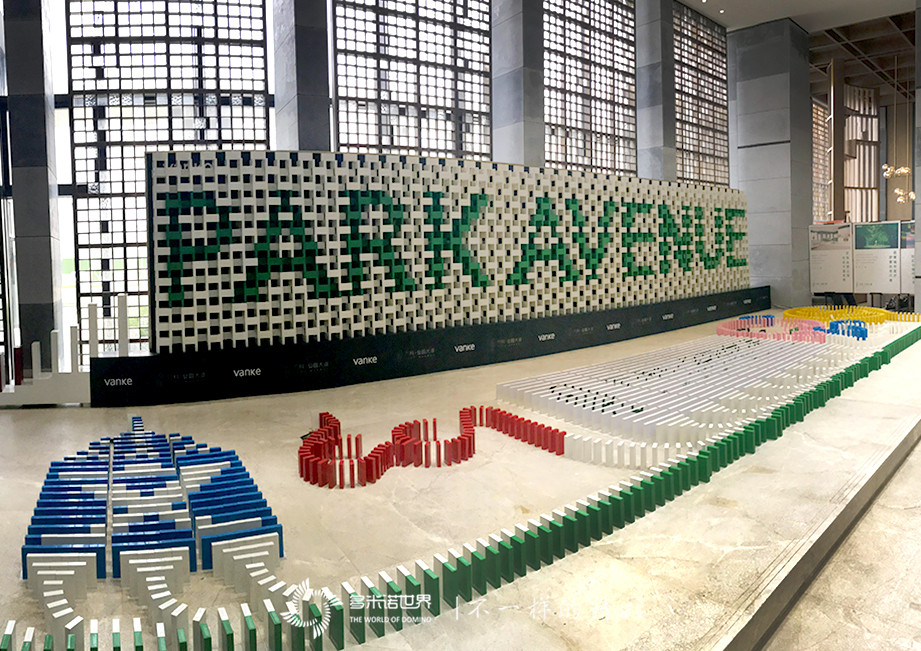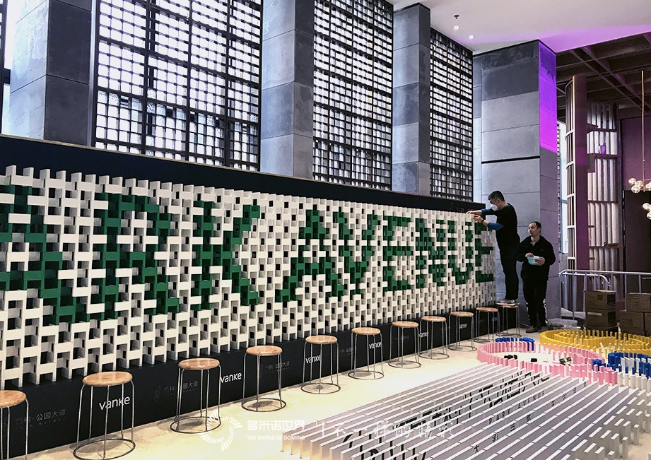 多米諾世界團(tuán)隊(duì)為萬科·公園大道特別設(shè)計(jì)的多米諾骨牌墻作品,由5656枚特制多米諾骨牌搭建而成,在骨牌墻前方,還配有展現(xiàn)萬科·公園大道中央生活區(qū)的四幅多米諾圖案及萬科LOGO畫面,經(jīng)過多米諾世界小伙伴48小時(shí)的專注搭建,最終完美呈現(xiàn)在大家面前。