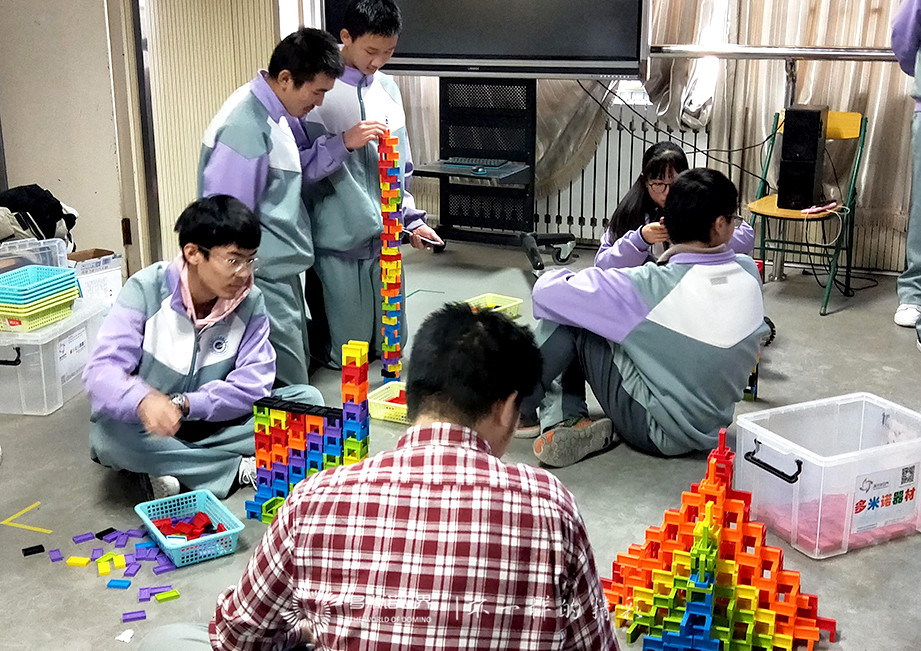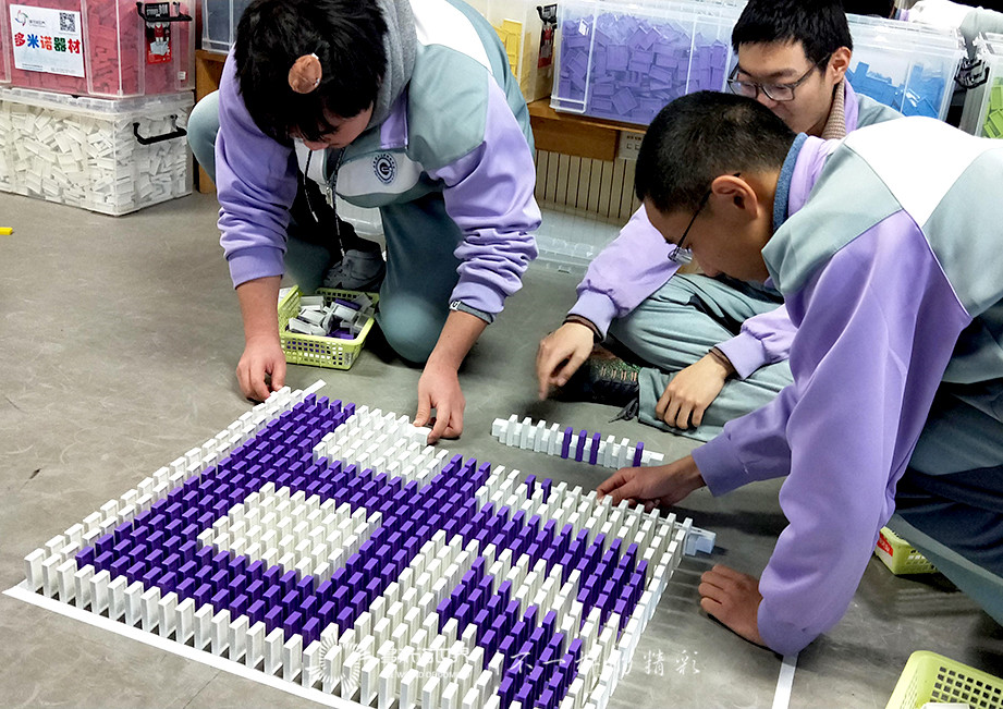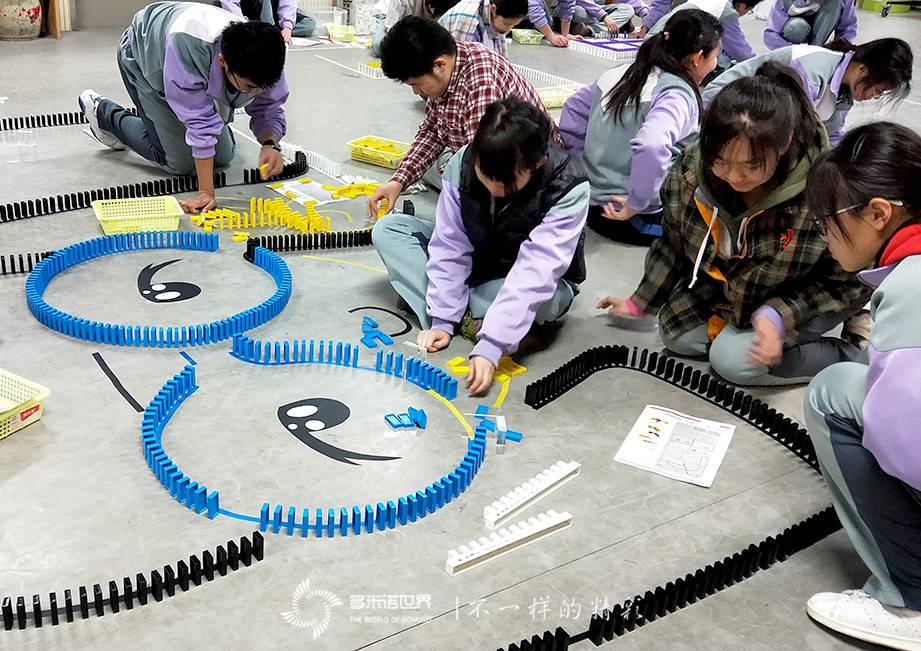 多米諾世界的老師,把同學(xué)們的創(chuàng)意構(gòu)想,設(shè)計成多米諾骨牌可以呈現(xiàn)的方案,并和同學(xué)們一起規(guī)劃場地,指導(dǎo)同學(xué)們完成骨牌碼放。
