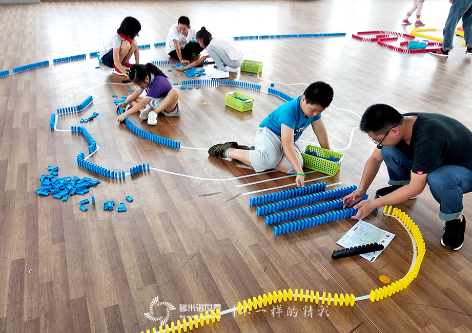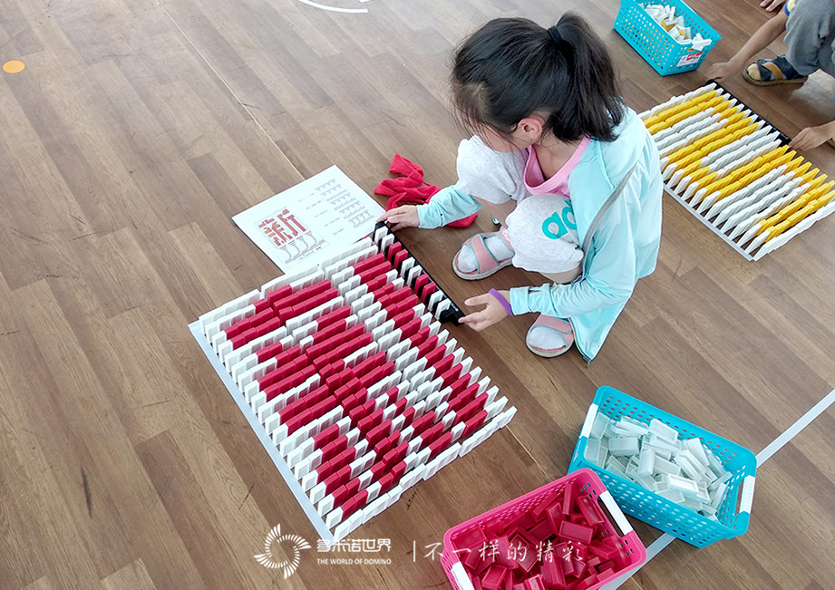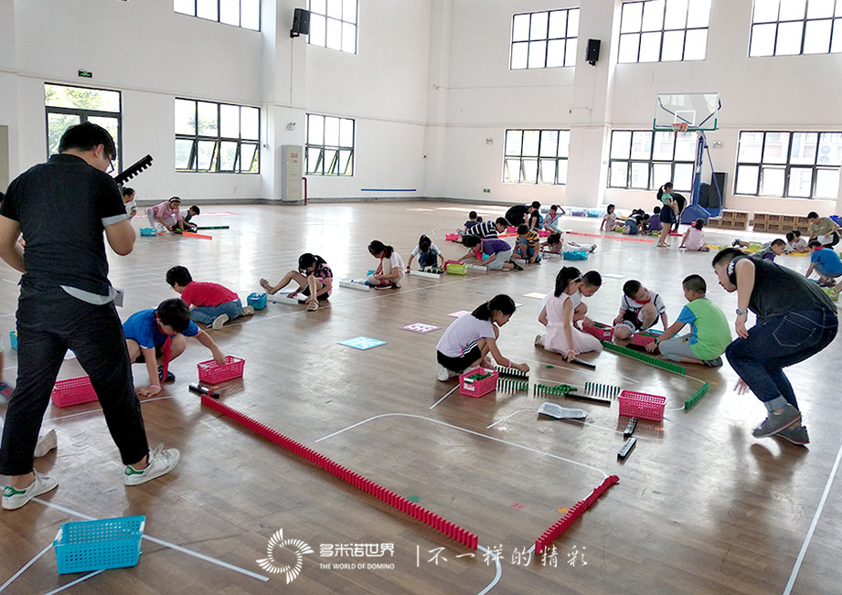 不管是多米諾骨牌啟動儀式,還是多米諾科普教學成果演示,都是由多米諾世界團隊精心策劃與設(shè)計的。并且兩日前就已開始進行骨牌搭建。過程中,多米諾世界團隊的專業(yè)老師指導志愿者完成了近9米長的多米諾立體道具墻的骨牌碼放;并指導西大街小學的50位同學,共同完成了近3萬枚骨牌搭建的多米諾骨牌作品。