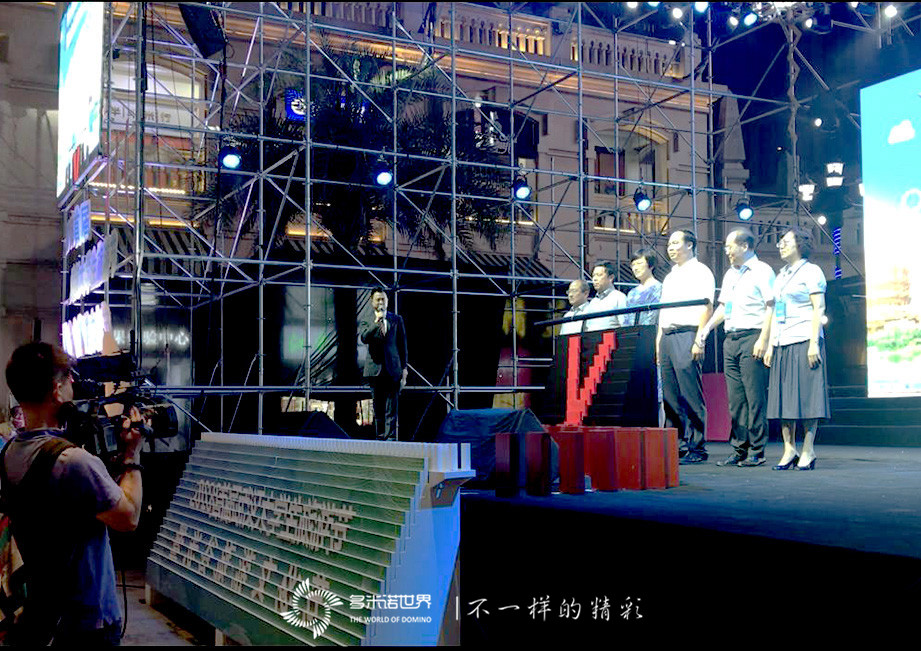 2018年6月22日晚,由武漢市旅游發(fā)展委員會(huì)、武漢東湖新技術(shù)開(kāi)發(fā)區(qū)管委會(huì)、武昌區(qū)人民政府、共青團(tuán)武漢市委員會(huì)、長(zhǎng)江日?qǐng)?bào)報(bào)業(yè)集團(tuán)、武漢廣播電視臺(tái)(集團(tuán))主辦的“2018首屆武漢大學(xué)生旅游節(jié)暨光谷旅游文化節(jié)”,在光谷步行街柏林廣場(chǎng)隆重揭幕。由多米諾世界團(tuán)隊(duì)親臨武漢現(xiàn)場(chǎng)搭建,多位領(lǐng)導(dǎo)共同啟動(dòng)的多米諾啟動(dòng)儀式,拉開(kāi)了首屆武漢大學(xué)生旅游節(jié)的序幕,新穎、壯觀的啟動(dòng)儀式,吸引了來(lái)賓與觀眾的目光,看著多米諾骨牌瀑布般前行、瞬間翻轉(zhuǎn),現(xiàn)場(chǎng)頓時(shí)掌聲雷動(dòng)、歡呼聲迭起。