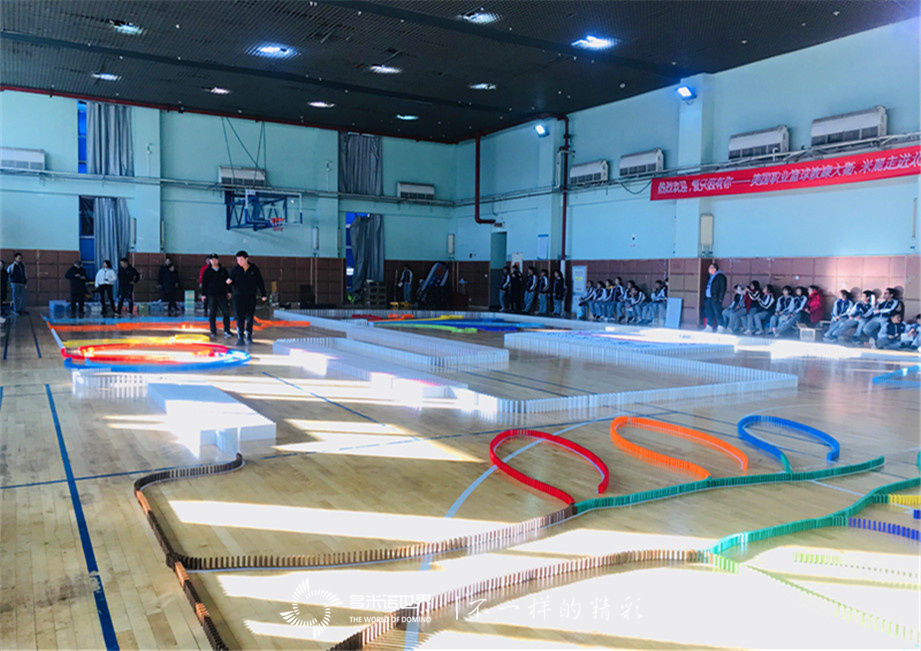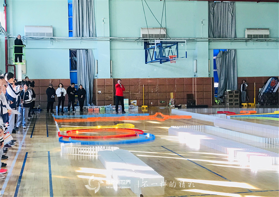 2019年12月19日,北京海淀實(shí)驗(yàn)學(xué)校百年校慶之際,學(xué)生們以多米諾骨牌展演的形式慶祝建校百年,傳遞學(xué)子們對(duì)學(xué)校的深深祝福。象征青少年朝氣蓬勃奔跑的人,彩虹顏色的數(shù)字100,五彩的智慧樹(shù),一支支豎起的校旗,慶祝的煙花,表達(dá)祝福的條幅畫面以及巨幅學(xué)校標(biāo)識(shí),學(xué)生們用手中的多米諾骨牌一一描繪出來(lái)。在認(rèn)真仔細(xì)的骨牌碼放過(guò)程中,孩子們感受到了并肩努力,團(tuán)隊(duì)協(xié)作帶來(lái)的力量,欣喜的期待成果的展現(xiàn)。經(jīng)過(guò)兩個(gè)小時(shí)的共同努力,表達(dá)百年校慶祝福的多米諾骨牌作品順利完成,在全場(chǎng)學(xué)生們和老師們的倒計(jì)時(shí)聲中,校長(zhǎng)輕輕推動(dòng)第一枚骨牌,骨牌一路順利前行,畫面完美展現(xiàn),全場(chǎng)掌聲雷動(dòng),為共同努力的作品歡呼,同時(shí)也為百年校慶獻(xiàn)上了最深的祝福。